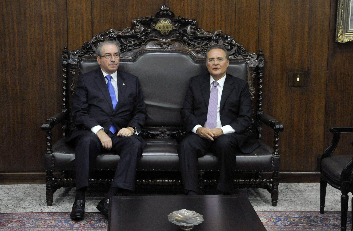 Presidente da Câmara Eduardo Cunha (PMDB-RJ) reunido com o presidente do Senado Renan Calheiros (PMDB-AL) para a entrega do processo de impeachment da Presidente Dilma Rousseff (Foto:
