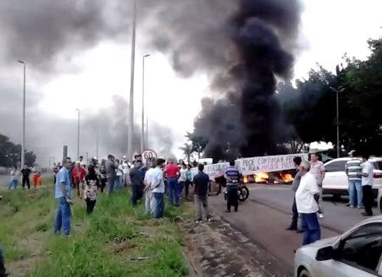 Manifestantes fecham a GO-080 e colocam fogo em pneus (Foto: Reprodução)