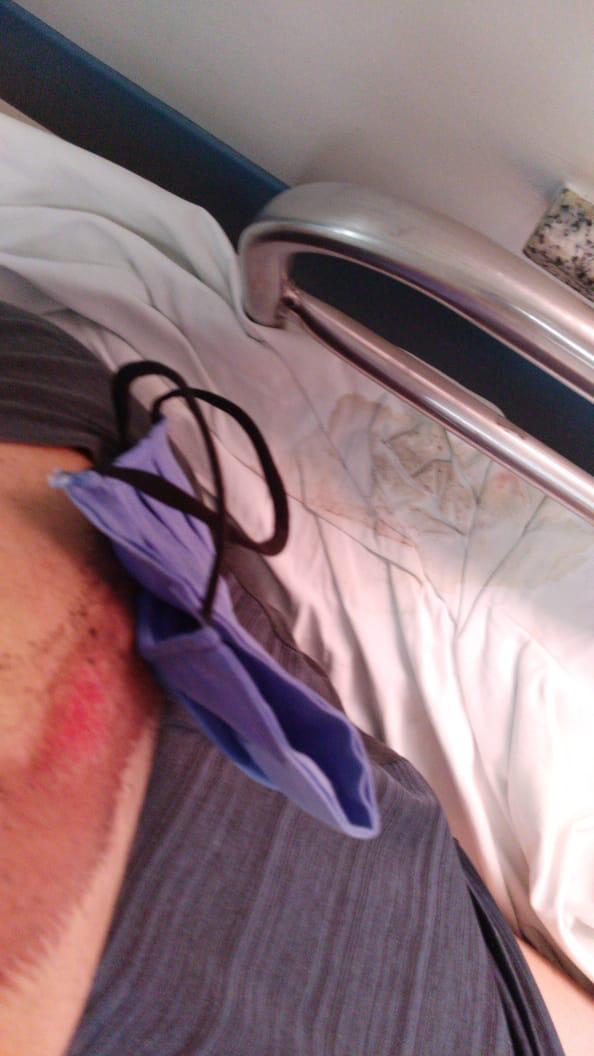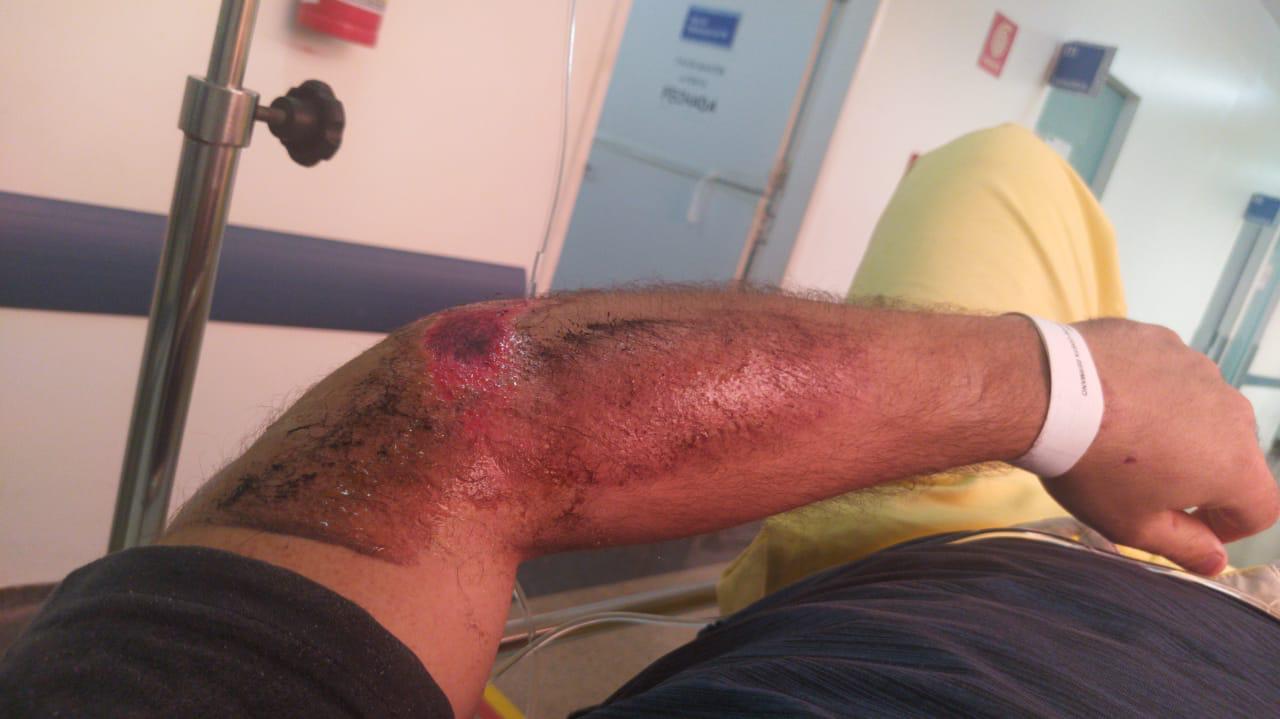A mulher contou também que não foi feita a limpeza dos machucados e a camisa do paciente grudou no ferimento do braço.