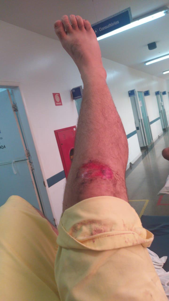 Luiz Henrique caiu da moto ao se desequilibrar quando um cachorro atravessou em sua frente, na Avenida Curussá, no Jardim Helvécia.