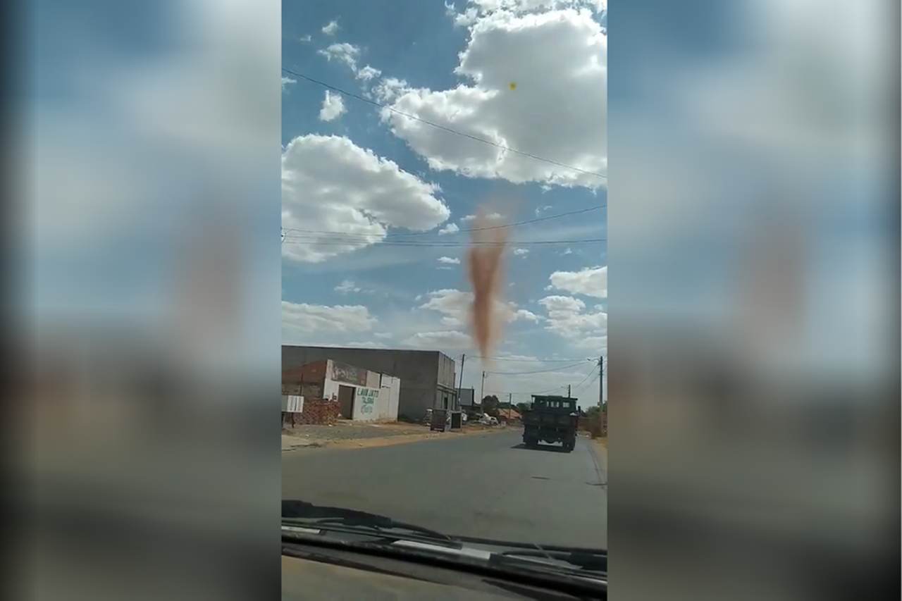 Um enorme redemoinho de poeira foi visto por moradores da Vila Romana, em Aparecida de Goiânia.