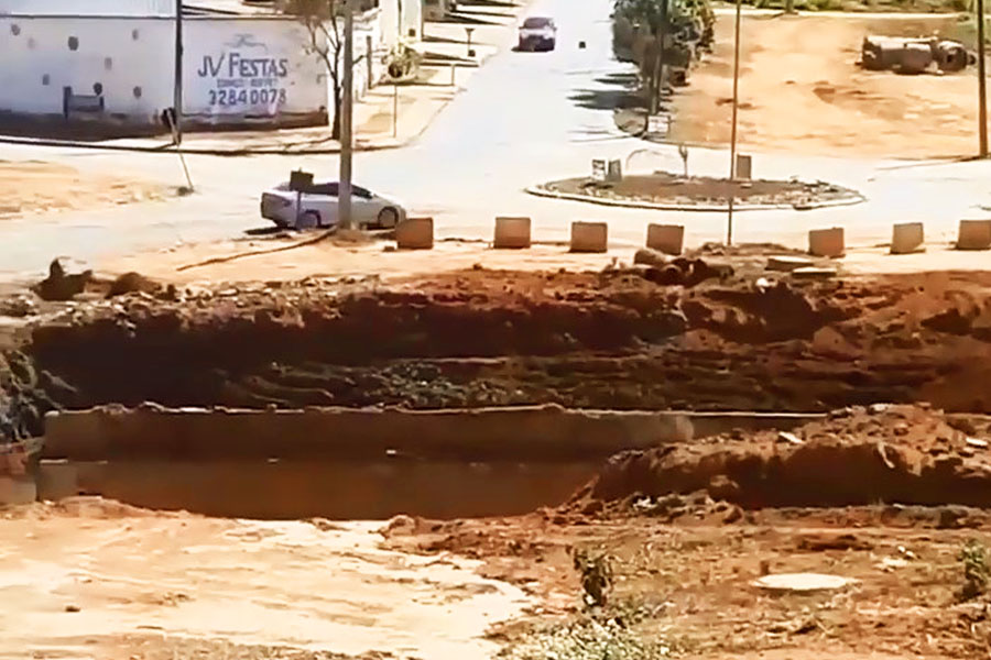 À época, a previsão de conclusão era de 90 dias para construção do bueiro celular com peças pré-moldadas.