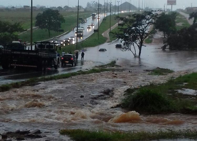 No final da manhã desse sábado, 20, uma represa que fica dentro de uma propriedade particular ao lado rodovia GO-070 transbordou. A água invadiu a pista que liga Goianira a Goiânia. Dois motoristas tentaram atravessar a parte alagada e ficaram ilhados.