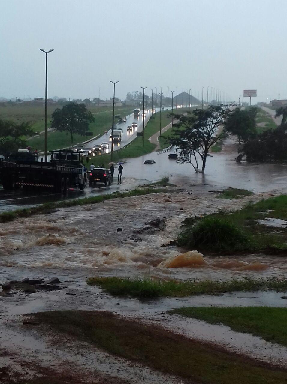 O alagamento provocou um congestionamento de mais de dois quilômetros. A rodovia já está liberada. Ninguém ficou ferido. Apenas danos materiais.