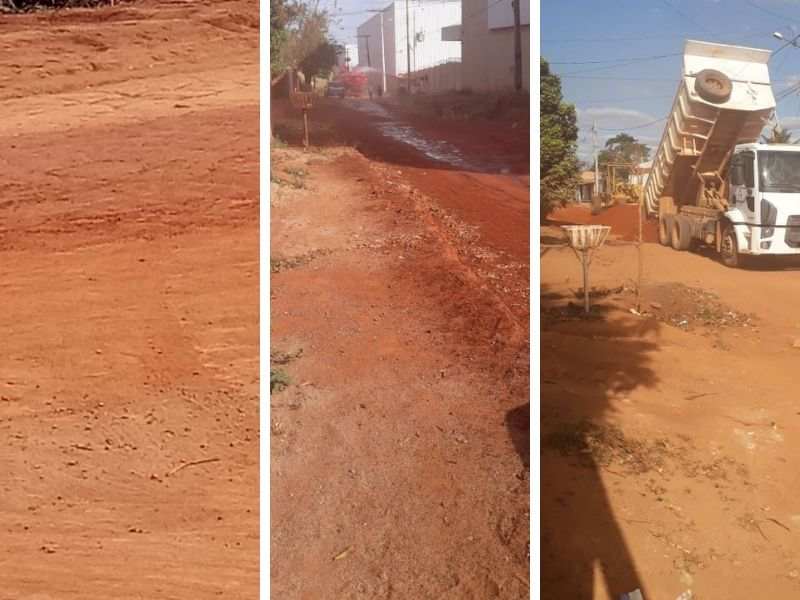No local, já até foi iniciada a implantação do asfalto, com a instalação de galerias. Mas a terra ficou solta sobre os locais escavados e a pavimentação não chegou.