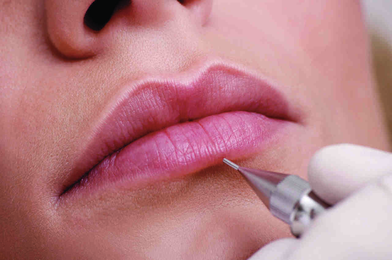 Dermógrafo entra em ação com o contorno dos lábios e depois preenchimento completo, que leva em torno de uma hora | Foto: divulgação