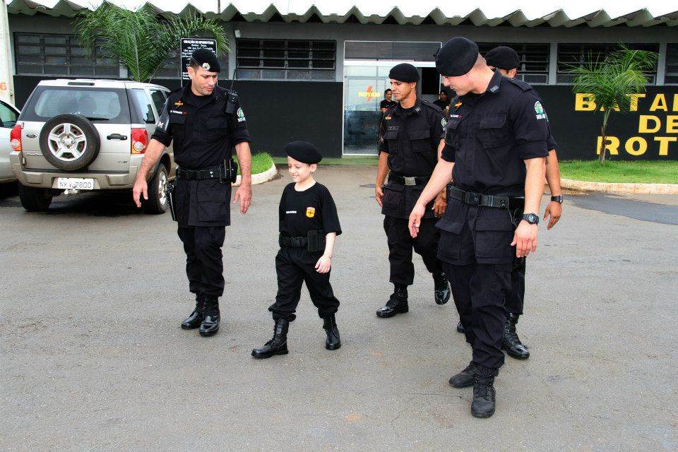 Na manhã desta terça-feira (14), a Polícia Militar realizou o sonho de Guilherme Molliery, de seis anos, na sede do Batalhão de Rotam, em Goiânia. O garoto tinha a vontade de conhecer os policiais da rotam