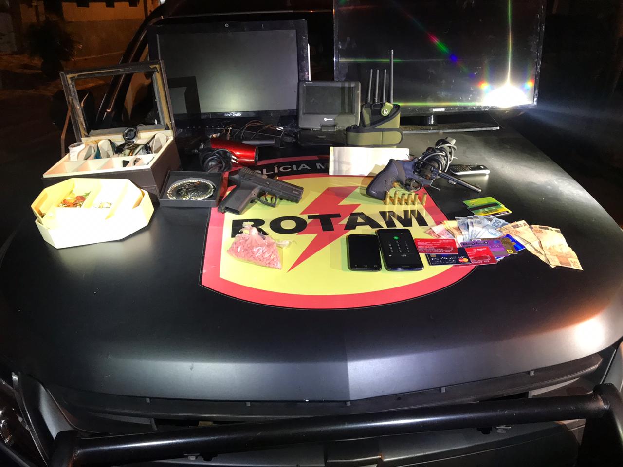 Após invadirem a casa do dono de uma tradicional churrascaria na capital, o bando levou da residência cofre, televisores, joias, perfumes, dinheiro, celulares e um veículo Uno Way.