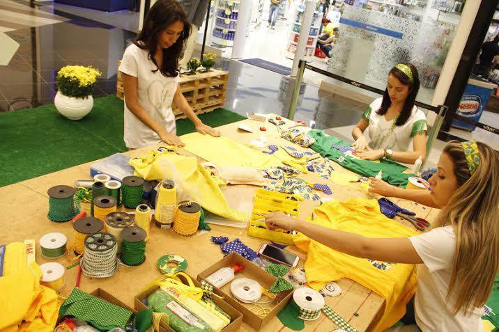 O Passeio das Águas Shopping realiza a customização de roupas arrecadadas com a campanha Vamos Vestir o Brasil de Verde e Amarelo, que promete incluir pessoas carentes na torcida pela seleção pentacampeã. Até quinta-feira, 5, uma equipe de alunos do curso de design de moda de uma faculdade particular transformarão as doações feitas no Passeio das Águas Shopping em roupas para torcer, que serão entregues em abrigos municipais de Goiânia.