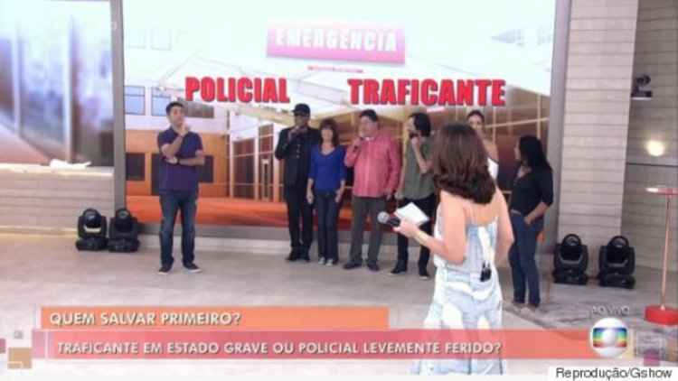 Durante o programa “Encontro Com Fátima”, exibido pela TV Globo, a apresentadora Fátima Bernardes levantou enquete que questionava quem deveria ser salvo primeiro: um traficante ou um policial.