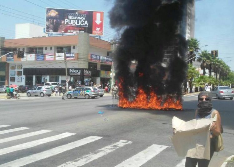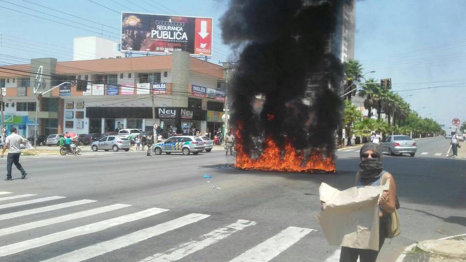 Secundaristas paralisam o trânsito na Avenida Rio Verde| Foto: Divulgação