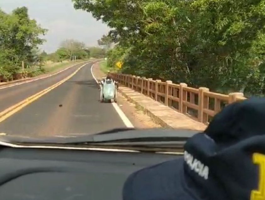 Diante da situação perigosa, ele foi acolhido pela PRF e conduzido até um posto de combustíveis próximo.