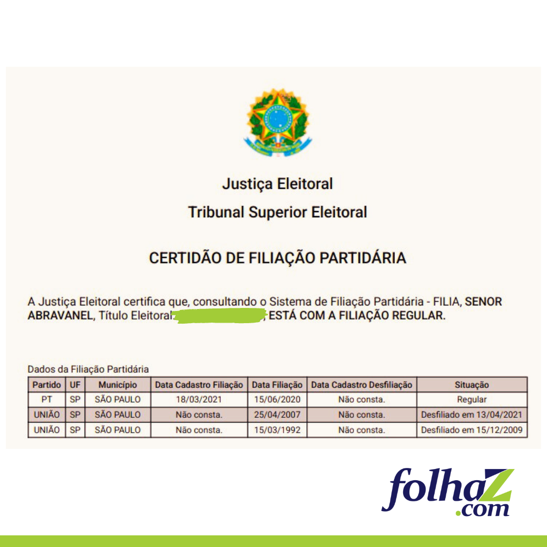 Além do PT, Silvio Santos consta com 2 filiações ao União Brasil (antes Democratas e PSL), em 2007 e 1992.