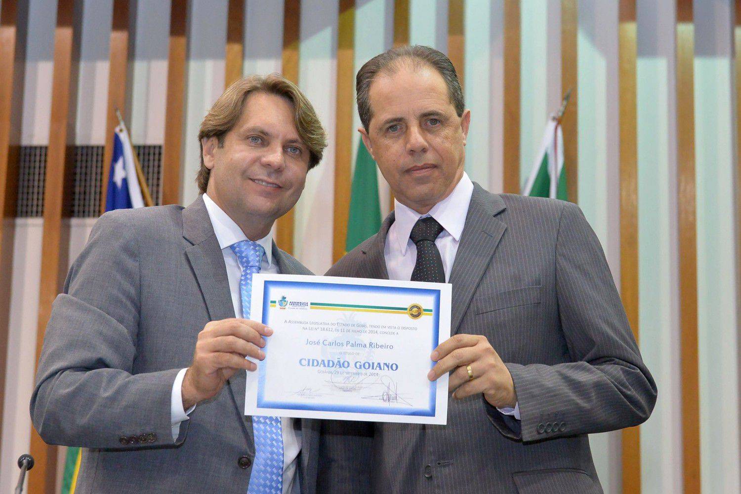 O empresário José Carlos Palma Ribeiro, presidente do Sindilojas Goiás, foi agraciado com o Título Honorífico de Cidadão Goiano, em sessão especial no Plenário Getulino Artiaga da Assembleia Legislativa do Estado de Goiás, por iniciativa do deputado Bruno Peixoto (PMDB).
