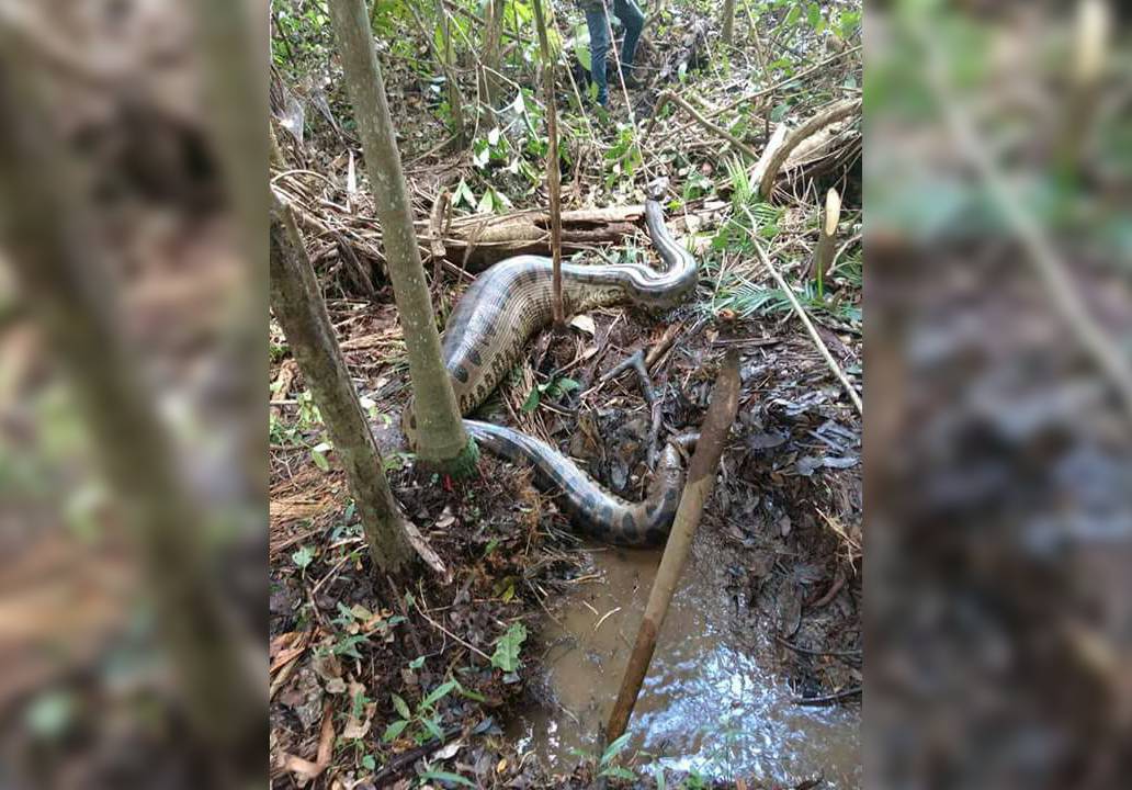 Conforme as pessoas que a encontraram, a cobra havia ingerido uma capivara. Para fugir, ela regurgitou a presa.