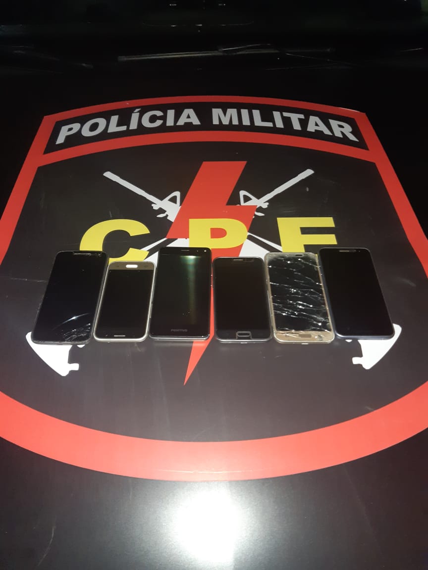CPE apreendeu celulares roubados com 1 dos suspeitos | Foto: Divulgação/PM