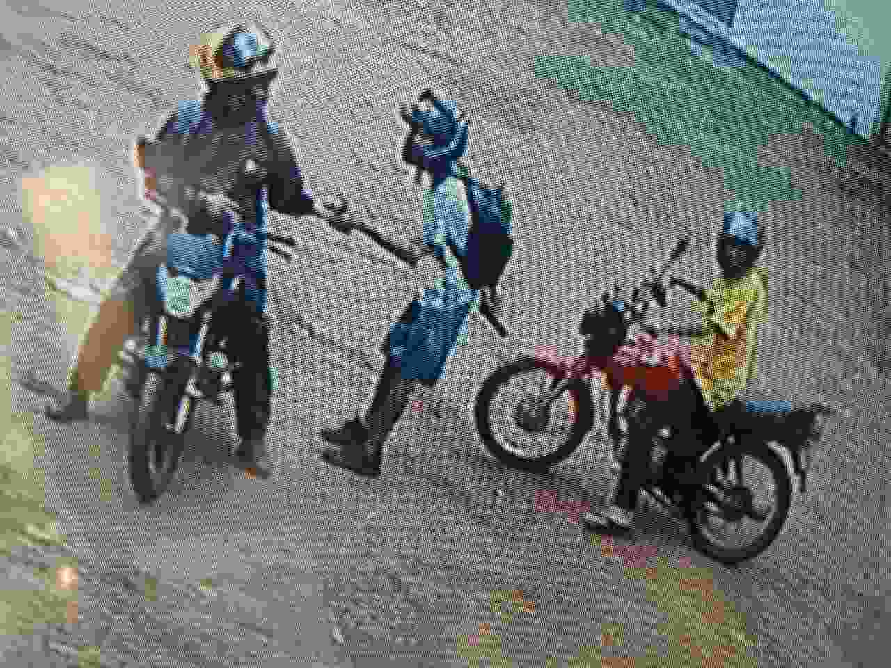 De acordo com o CPE, na casa de um dos suspeitos foi encontrada a motocicleta CG Titan vermelha usada nos crimes, capacetes e roupas que aparecem nas imagens enviadas à polícia e 7 celulares roubados.