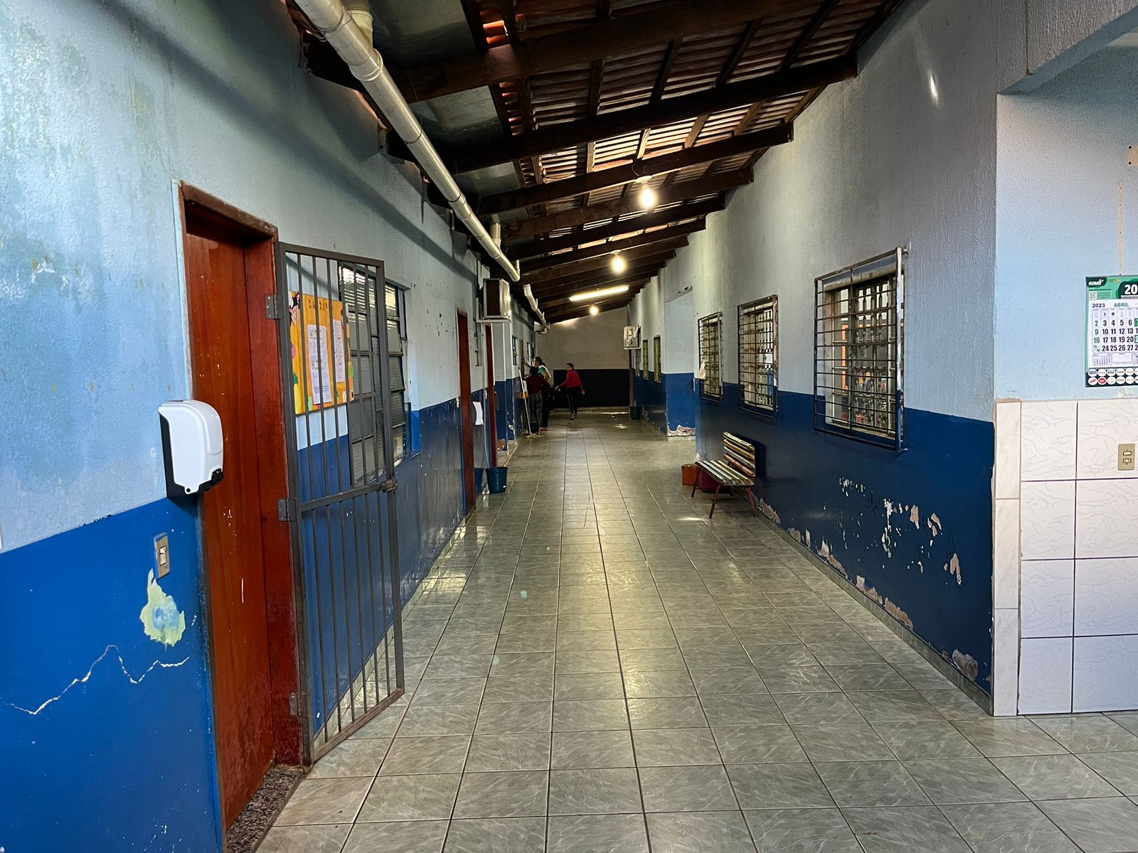 Já na Escola municipal Padre João Bosco Pereira, na cidade de Aragoiânia, foi constatado uma grande quantidade de mofo nas paredes da despensa de alimentos.