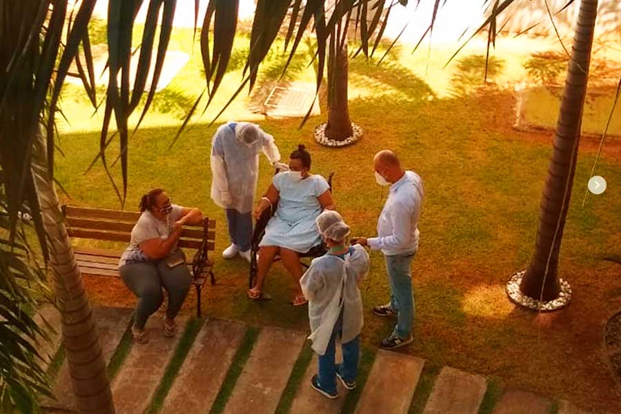Depois de vários dias internados no Hospital Municipal de Aparecida de Goiânia, pacientes podem, enfim, voltar a ver a luz do sol durante terapia no jardim da unidade | Foto: Divulgação