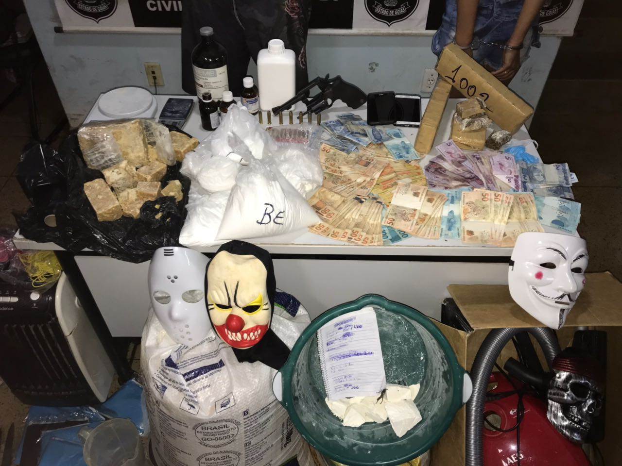 No local também foram apreendidas duas balanças de precisão, um revólver calibre 38 com numeração suprimida, 16 munições calibre 38, maquinários para a produção da droga, vidros de éter e quase R$ 5 mil em dinheiro.