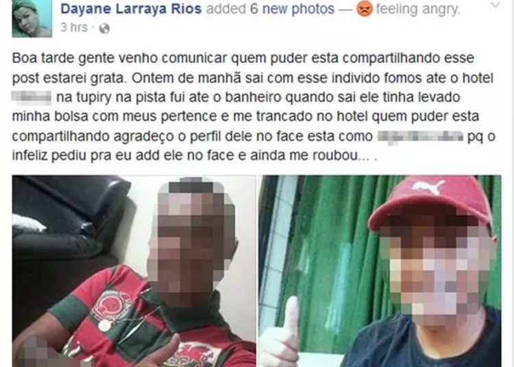 Revoltada com a situação, ela fez postagens em grupos nas redes sociais estampando o rosto do suposto assaltante pedindo a devolução dos pertences. O caso aconteceu no último domingo, 8.