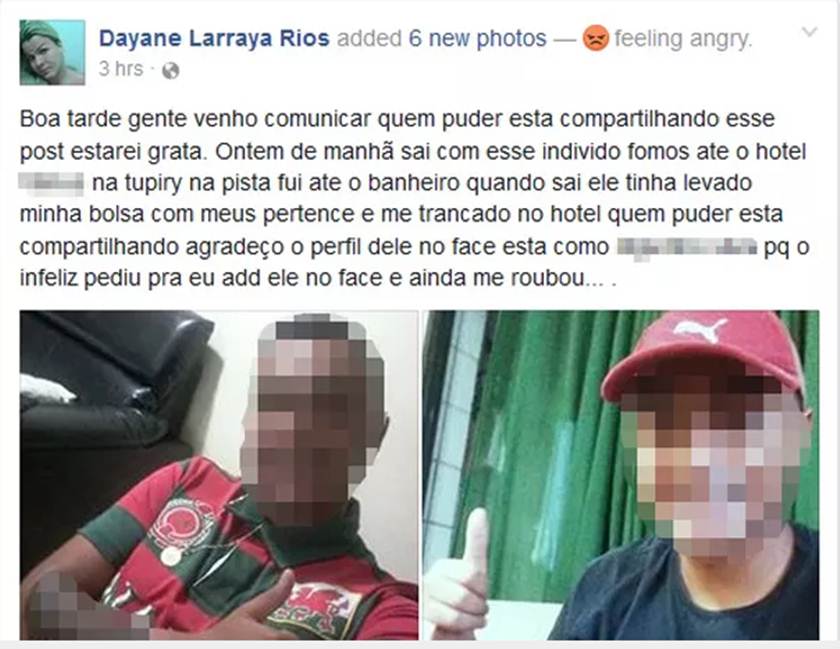 Revoltada com a situação, ela fez postagens em grupos nas redes sociais estampando o rosto do suposto assaltante pedindo a devolução dos pertences. O caso aconteceu no último domingo, 8.