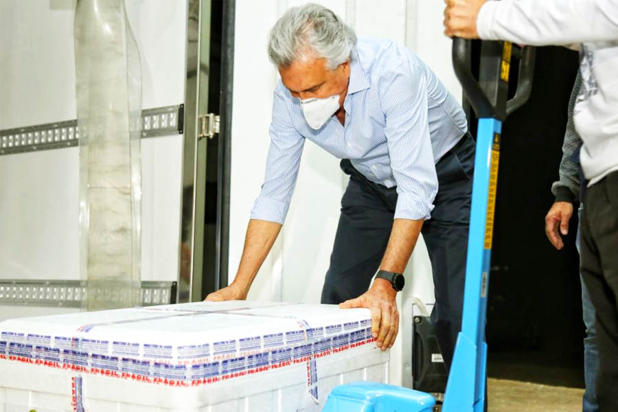 Governador de Goiás, Roanldo Caiado recebe doses de vacina contra a covid-19 | Foto: André Sadi