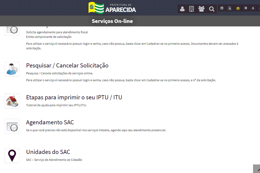 Ao acessar o link, o candidato deve escolher a opção Agendamento SAC, onde será encaminhado para a janela da busca de serviços.