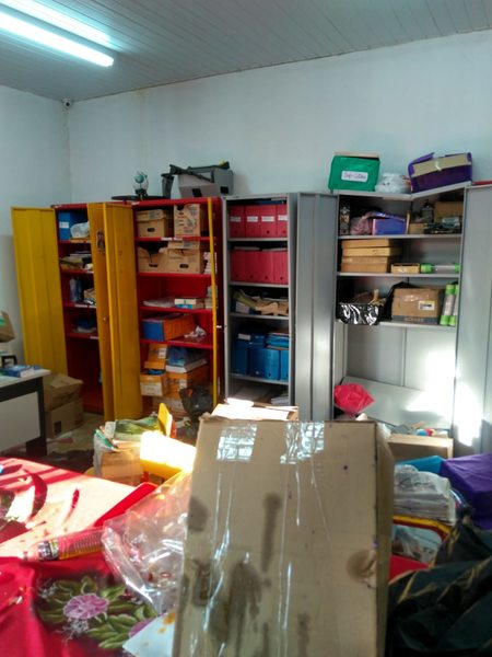 Lá dentro, quebraram móveis, cadeiras e armários e sujaram várias salas com papéis e tinta.