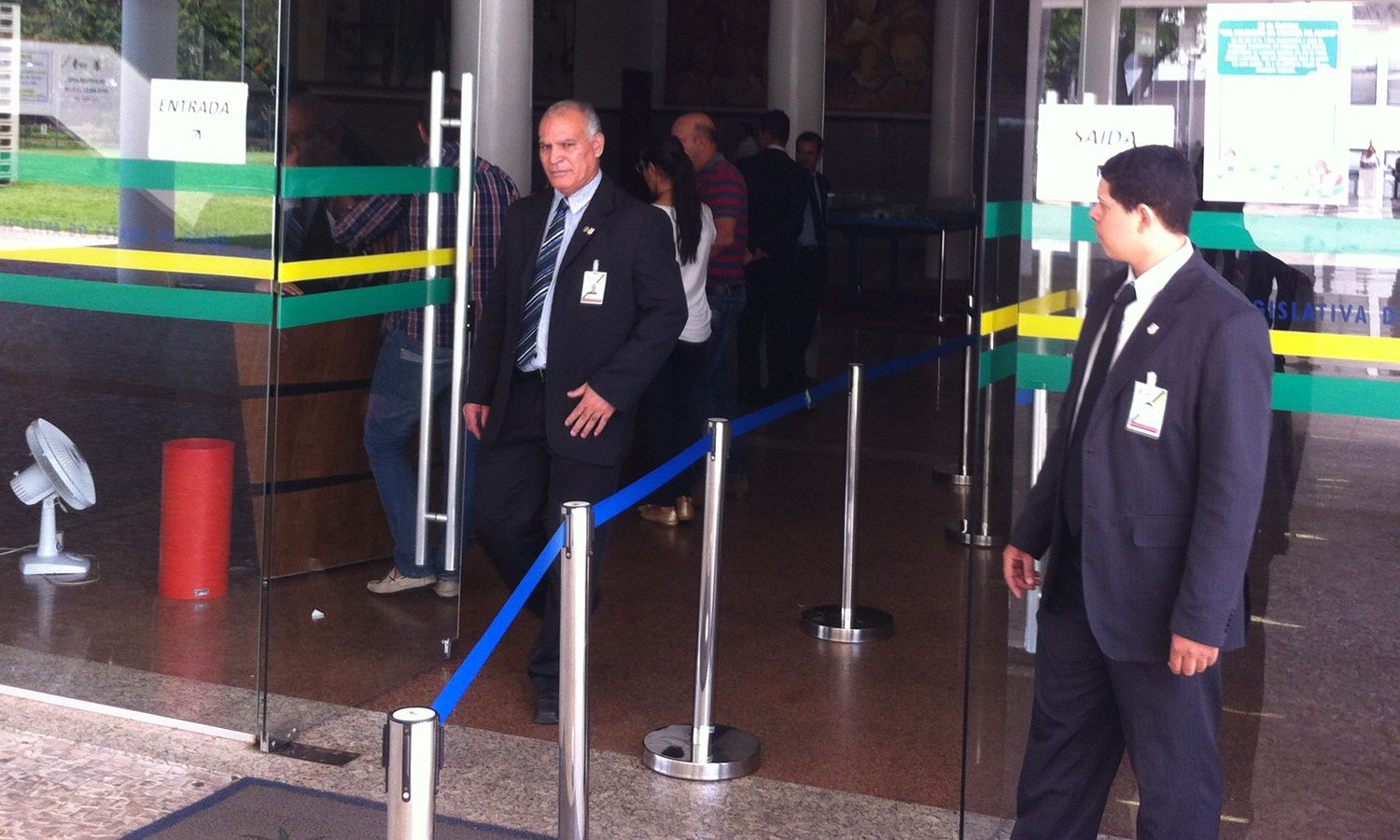 Ninguém passa pelos seguranças sem estar com crachá funcional ou mesmo com adesivo de visitante / Foto: Guilherme Coelho