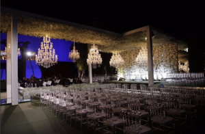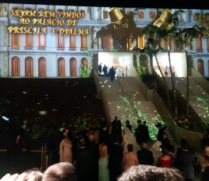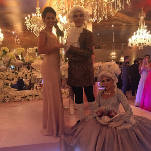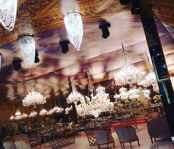 Com 1300 convidados, a festa teve inspiração em palácios europeus e o teto do salão tinha imagens do Palácio de Versalhes, assim como os lustres. Quatro mil orquídeas naturais ornamentavam todo o altar.