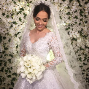 A noiva Priscila usou produção do estilista Junior Santaella, com véu de 8 m. Ela também usou sapatos Loboutin, tiara de diamantes e buquê criado por Jeanette Dawailibi. O noivoi, por sua vez, vestiu Armani.