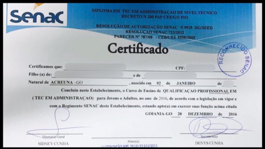 Na “propaganda”, o homem ressaltava que o seu “serviço” não envolvia aulas. “Trabalho com todos os cursos técnicos existentes no Brasil, porém, não dou aulas. Dou o certificado de conclusão com histórico e grade de disciplina para quem já tem experiência na área que deseja o curso”, escreveu.