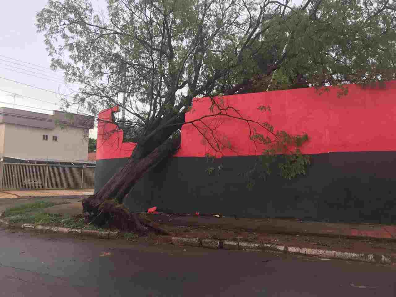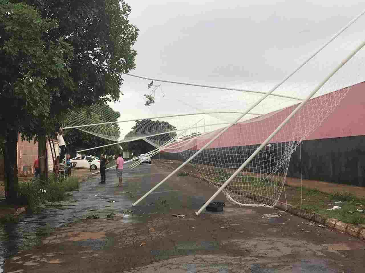 A forte chuva que caiu na tarde desta sexta-feira, 2 em alguns bairros de Goiânia, derrubou o alambrado do Centro de Treinamento do Atlético (GO), que fica localizado no Setor Urias Magalhães.