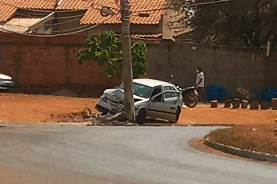 Câmeras de vigilância de um posto de combustível registraram o momento em que um carro bateu em cheio contra um poste de energia elétrica no Parque Ibirapuera, em Aparecida de Goiânia.