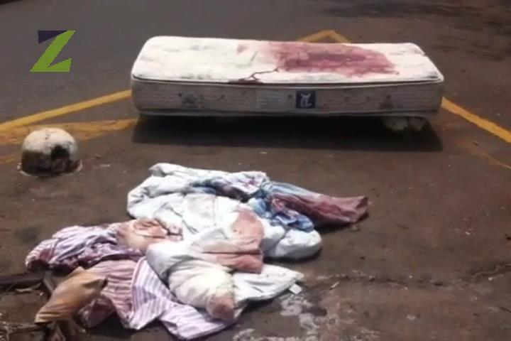 Um colchão e várias roupas de cama ensanguentados foram encontrados por moradores do Jardim América na manhã desta sexta-feira (30/10). De acordo com testemunhas, dois jovens em um carro sedã despejaram o material na na esquina da Rua C-211 com a Praça da C-204 por volta da meia noite.