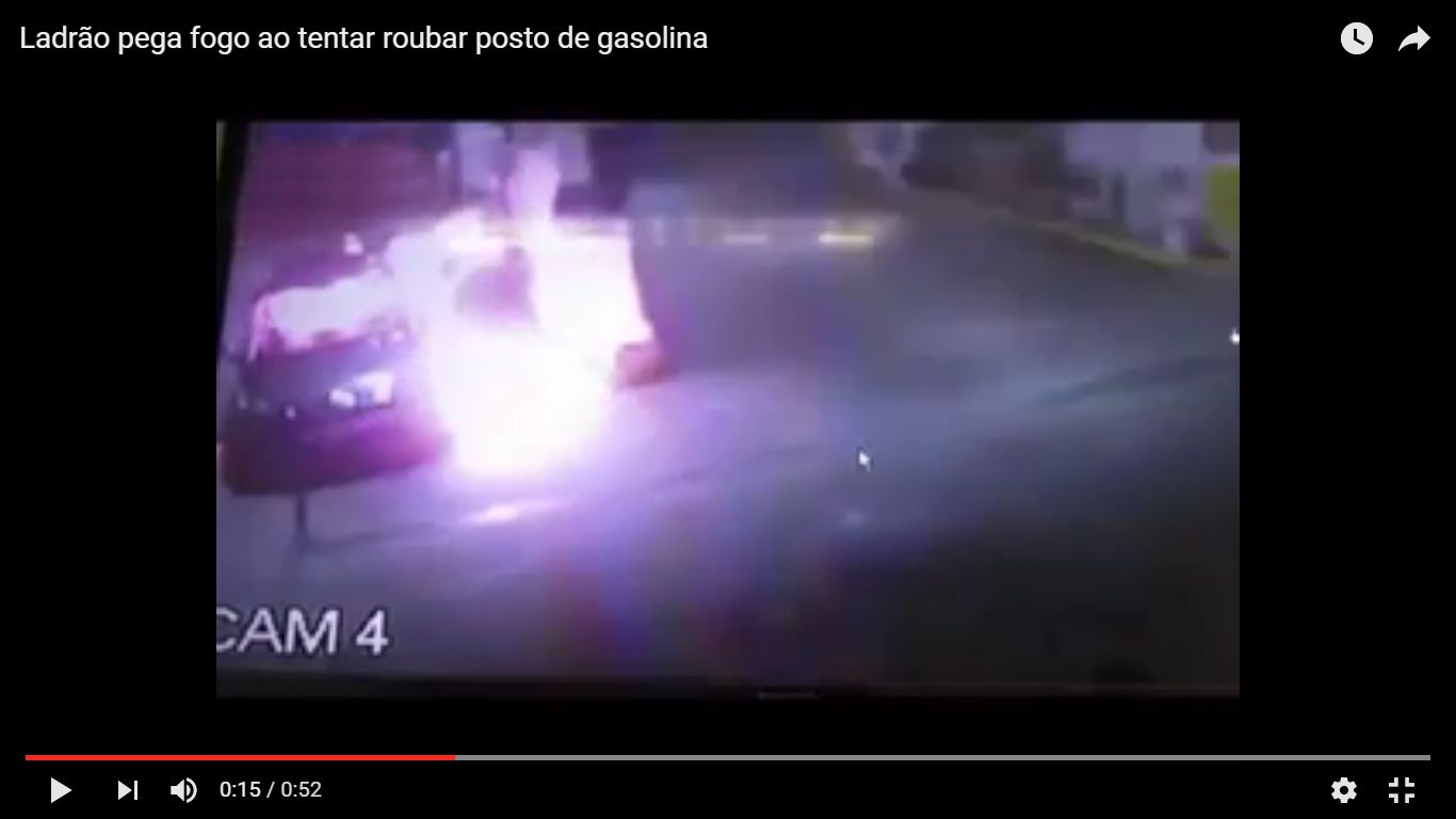 Vídeo mostra assaltante pegando fogo ao tentar assaltar frentista