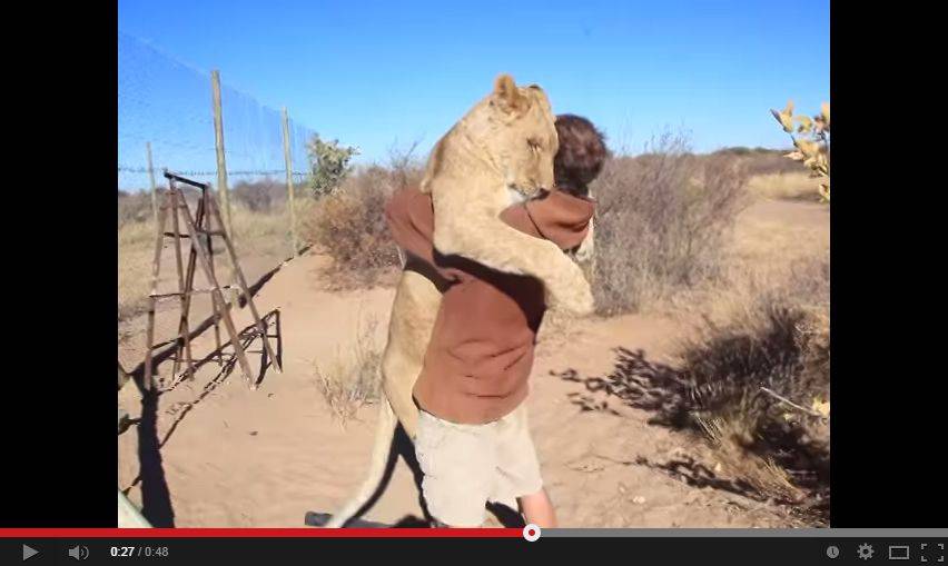 Vídeo mostra leoa “abraçando” criador