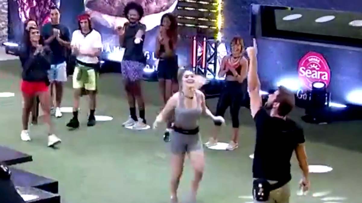 Assim que Caio foi declarado o nome líder na prova desta 5ª feira (8), a youtuber correu com o pé machucado para adular o fazendeiro.