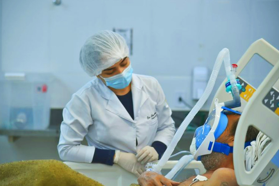 Tratamento da Covid-19 com máscaras de mergulho adaptadas para ventilação respiratória | Foto: Claudivino Antunes