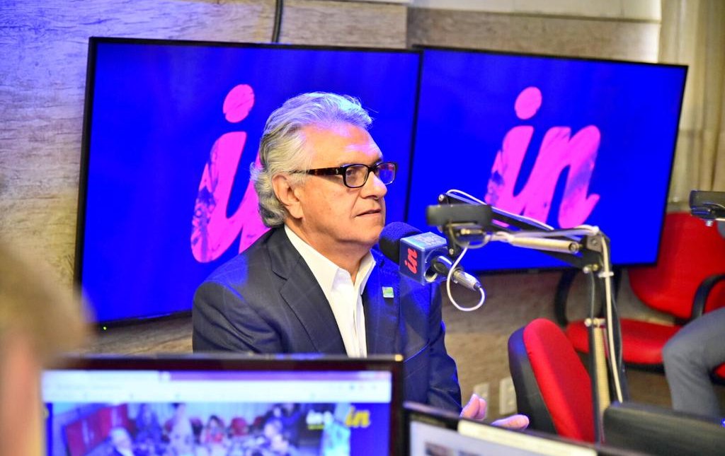 Governador Ronaldo Caiado deu entrevista ao vivo, no programa “Falando Sério”, da rádio Interativa FM, na manhã desta terça, 1º | Foto: Hegon Correa