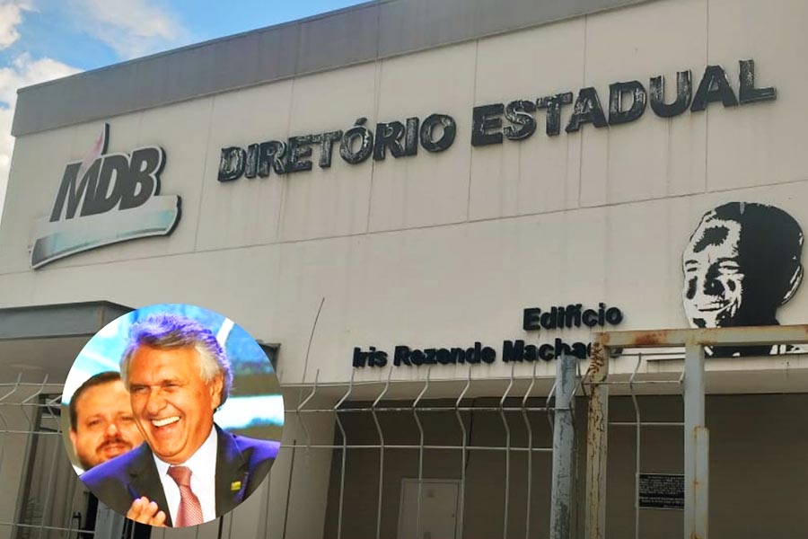 Ronaldo Caiado em reunião no diretório estadual do MDB | Foto: Montagem