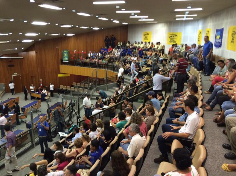Os servidores municipais lotaram a Câmara defendendo que a manutenção do veto poderia desencadear greve geral na Prefeitura. Aos gritos de “greve agora”, os servidores revoltaram contra os vereadores que votaram contra a derrubada do veto.