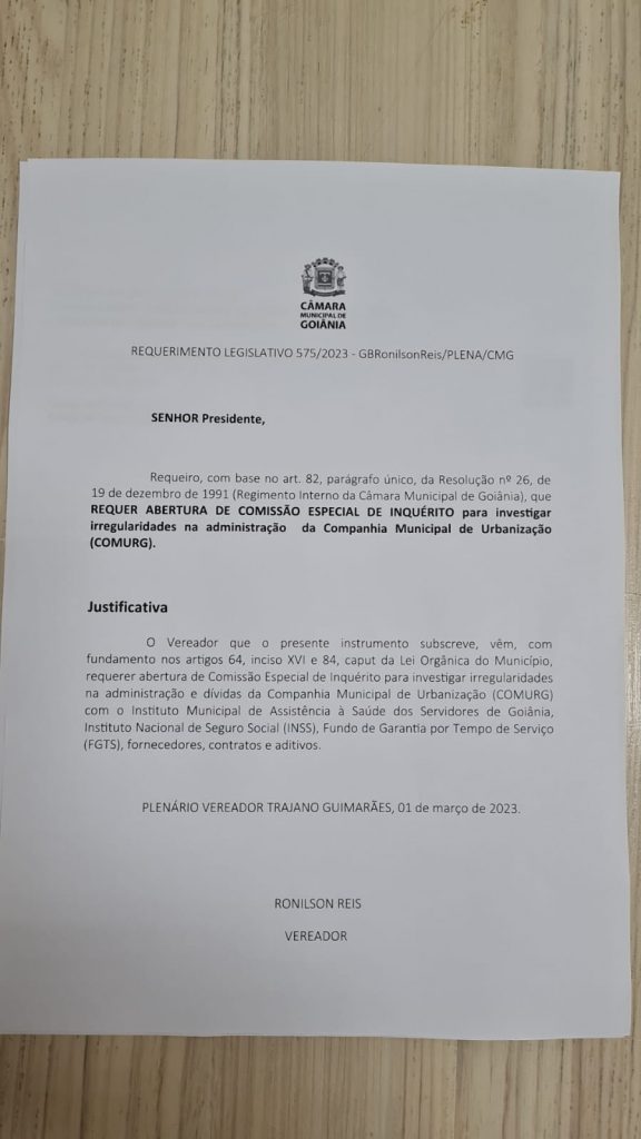 A Câmara de Vereadores de Goiânia vai abrir uma Comissão Especial de Inquérito (CEI) para apurar possíveis irregularidades na concessão de um crédito suplementar à Companhia de Urbanização de Goiânia (Comurg) em dezembro do ano passado.