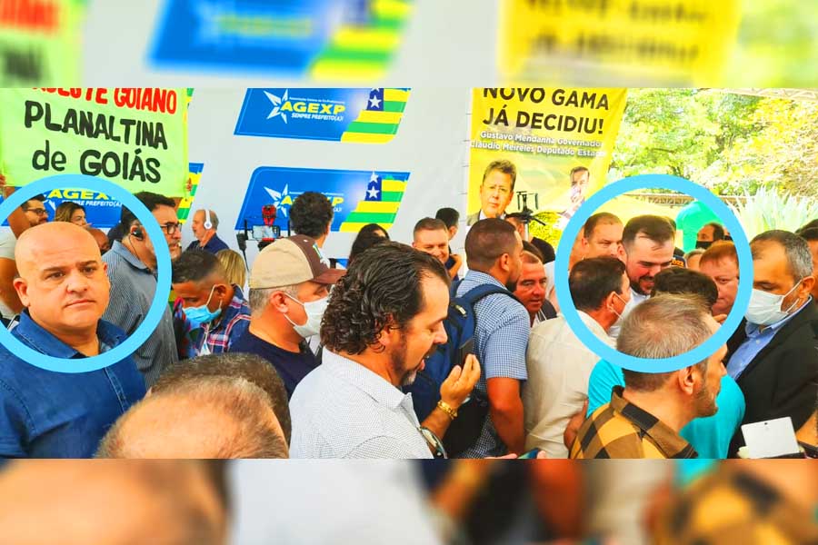 Ricardo Mendes e o auxiliar de Gustavo Mendanha, Rogério Almeida, durante evento em Aparecida de Goiânia | Foto: Folha Z