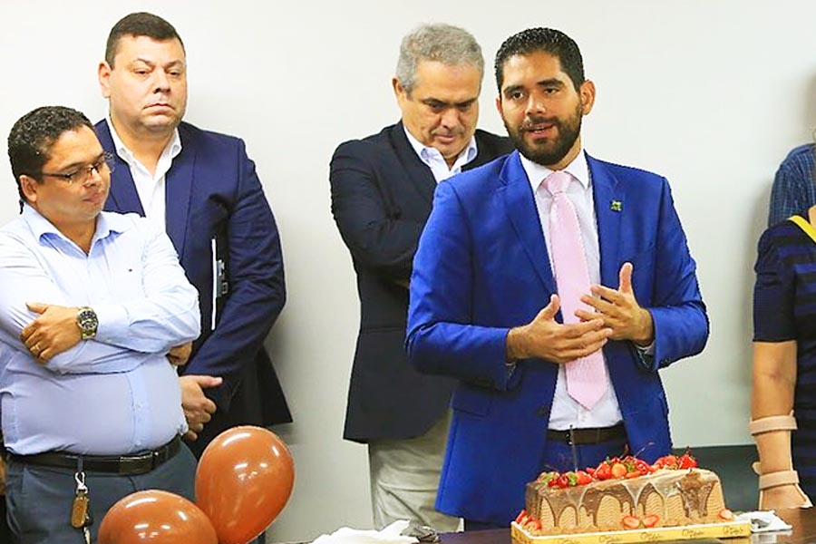 Ele foi até a sede do Executivo na última 4ª feira (4), para a comemoração do aniversário de 36 anos do vice-governador Lincoln Tejota, e foi registrado em foto.