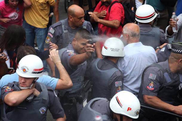 A Polícia Militar (PM) de São Paulo jogou spray de pimenta em manifestantes na Avenida Paulista, na tarde deste domingo, 18, que atingiu o ex-senador e candidato a vereador de São Paulo, Eduardo Suplicy (PT). O protesto é contra o Governo Temer.