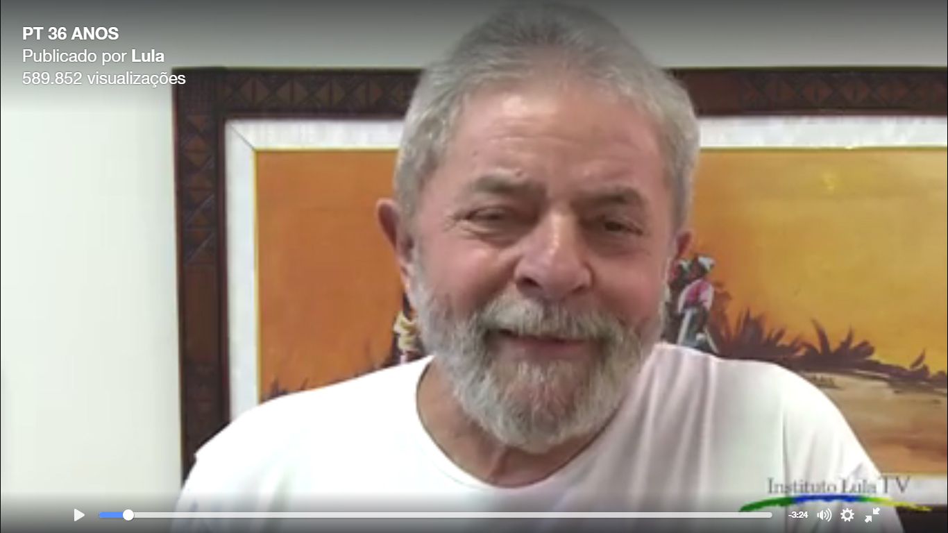 Nesta quarta-feira (10), o ex-presidente Lula divulgou em sua página no Facebook um vídeo em homenagem ao aniversário de 36 anos do Partido dos Trabalhadores.