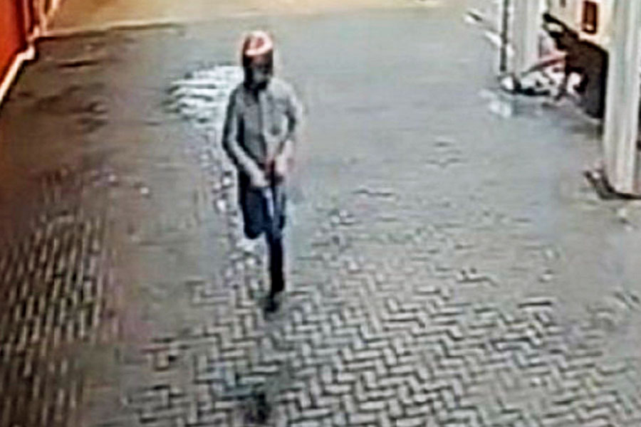 As imagens mostram o momento em que o autor chega em uma motocicleta, estaciona o veículo e caminha até a caminhonete do empresário.
