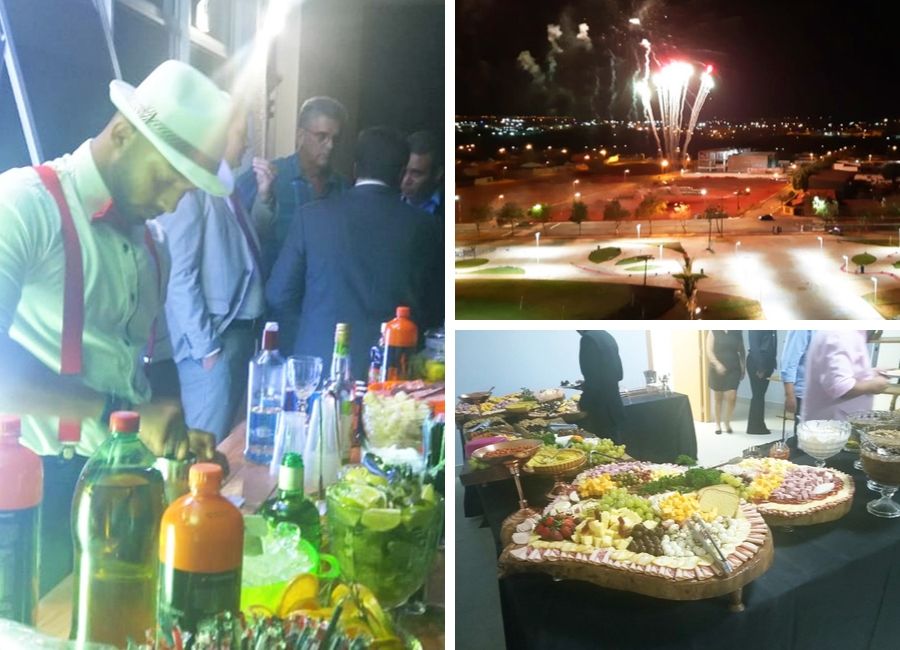 Convidados foram recebidos no terraço do 6º andar, de onde tiveram vista privilegiada do uma queima de fogos realizada em frente ao edifício por volta das 21h30.